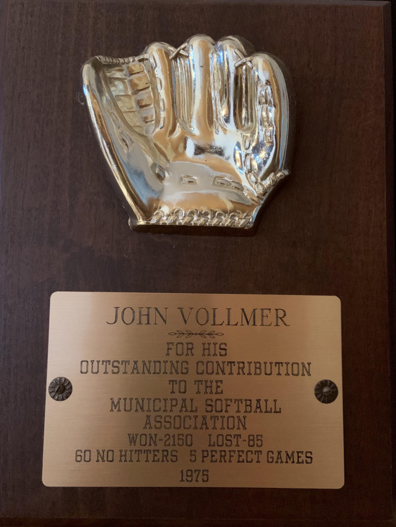 In 1935, Vollmer was pitching for three different ball clubs, Seven Corner’s Club, Saint James Lutheran Church and the Romolian’s Restaurant. The 16-year-old had distinguished himself in softball circles by pitching seven no hitters, of which three of them were in one week. Vollmer had just wrapped up a phenomenally successful season in 1935 with 32 wins and four losses.