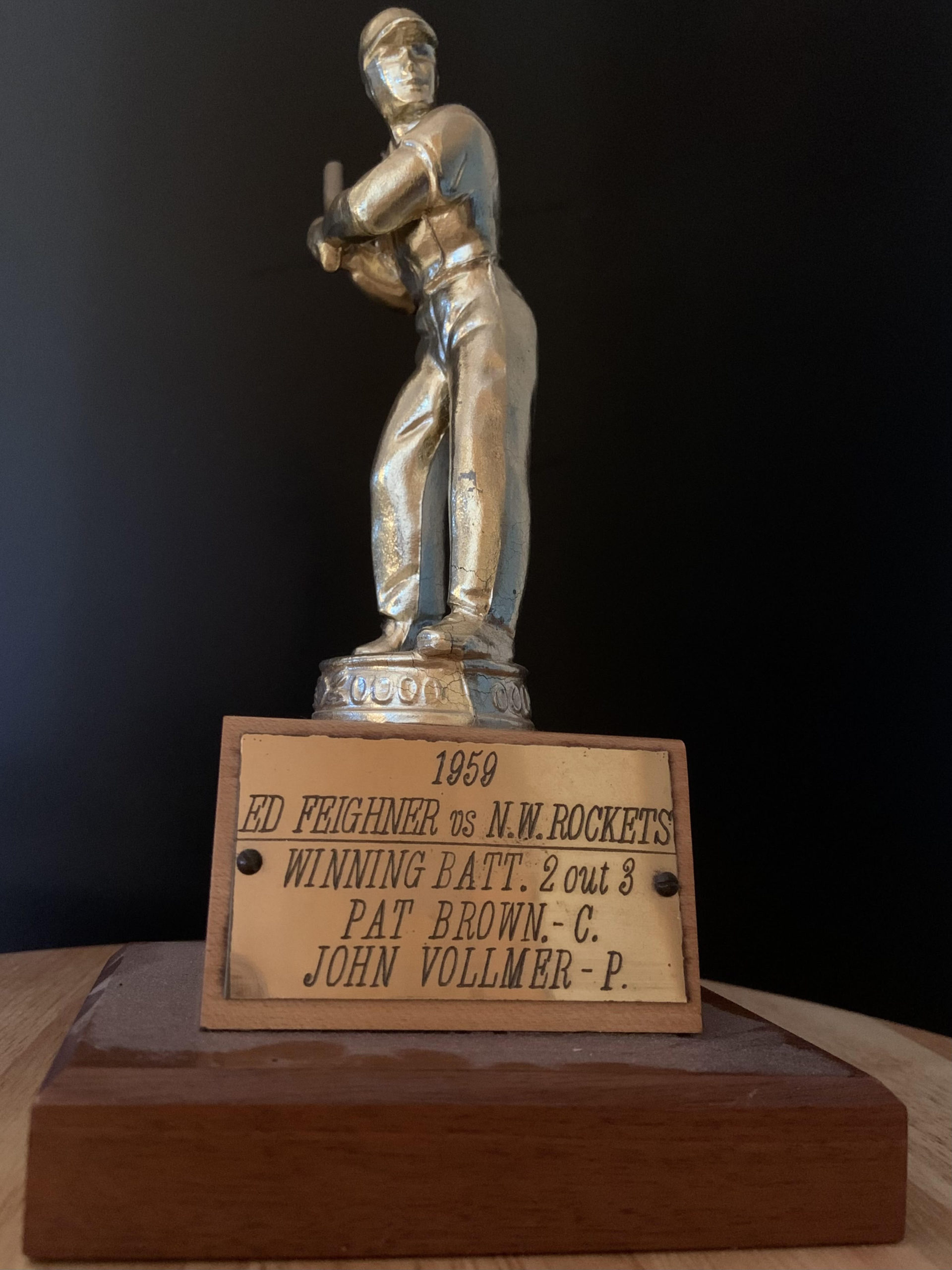In 1960, Univac, where Johnny worked, formed a softball team. Vollmer’s boss at Univac, Pat Brown, was his catcher and caught him during the Feigner games as well. The Univac team played in the commercial league which was the next league down from the classic league. The Univac team won their division many times in the six years they were together, and Johnny added at least six 0r seven more no hitters to his collection. Finally, after the 1965 season with Univac, Vollmer hung up his spikes, although he was still capable and good enough to continue pitching, he decided that he had enough. Many ball clubs tried to capture him and talk him into pitching for their team, but he had made up his mind and that was the end of a fabulous career.